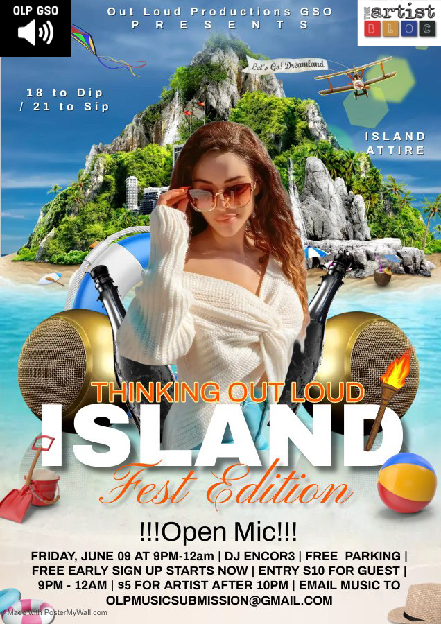 It’s an ISLAND FEST! Come join our Thinking Out Loud Open Mic with an Island Twist. We will be playing your favorite Island and Caribbean jams in between the talent and during our intermission. Bubbles will be on deck so get your camera’s ready to document this vibe!